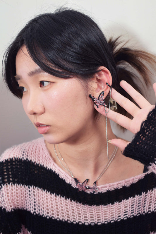 Dark Butterfly Tassel Ear Cuff - One piece