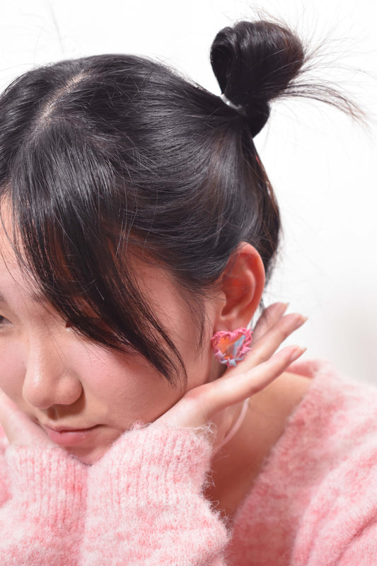 Airbrush Heart Shape Cross Earrings