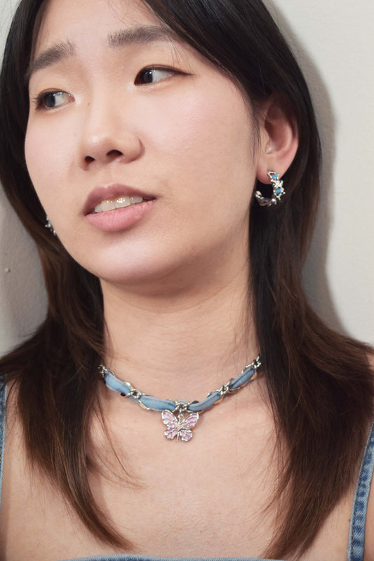 Denim Butterfly Braided Necklace