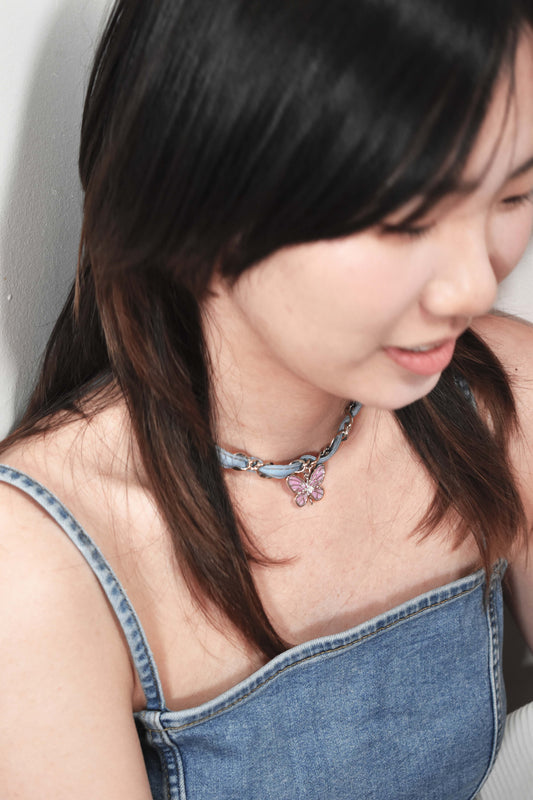 Denim Butterfly Braided Necklace